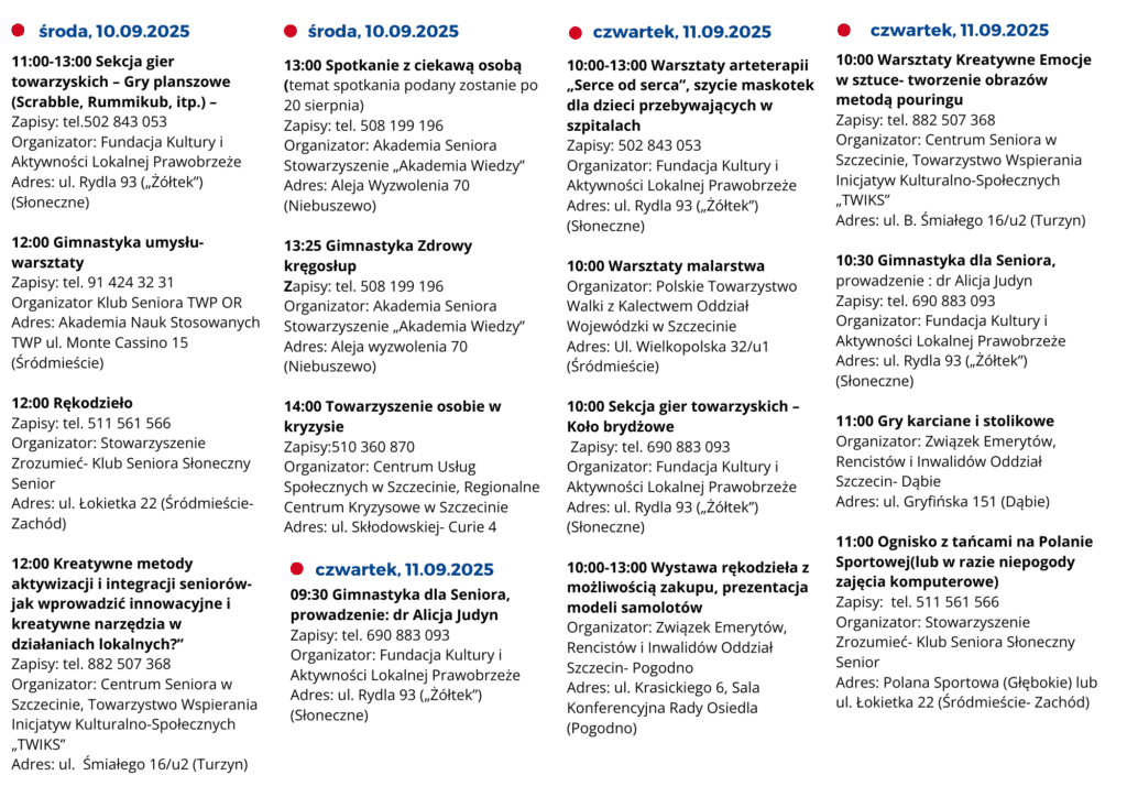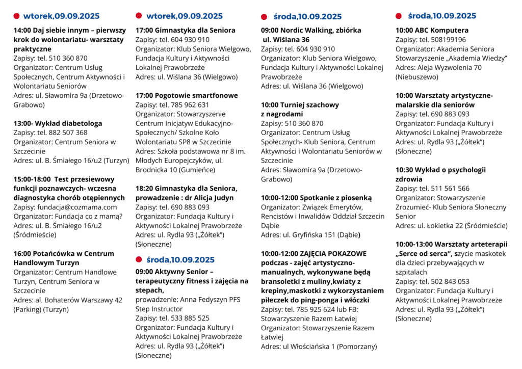 Ogromne podziękowania kierujemy także do naszych partnerów lokalnych, którzy od lat działają na rzecz seniorów w Szczecinie i wzbogacili program swoimi wydarzeniami.